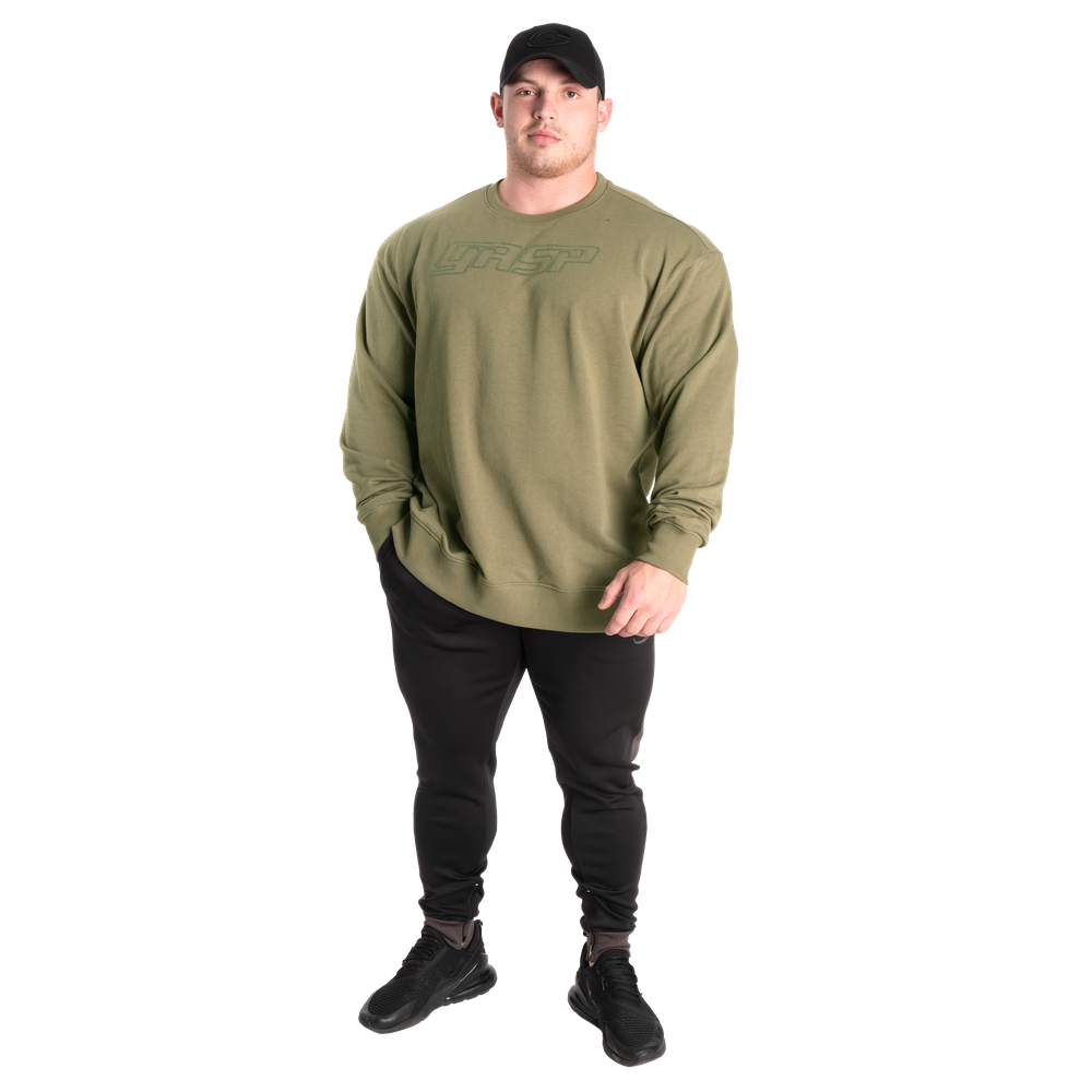 Features: Soft jersey fabric, looped backside, flock logo print, rib at cuff/bottom hem